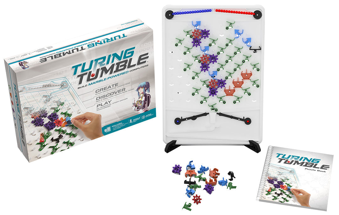 Turing Tumble is a revolutionary game where players (ages 8 to adult) build mechanical computers powered by marbles to solve logic puzzles. See how simple switches, connected together in clever ways, can do incredibly smart things. Easy to learn, hard to stop.